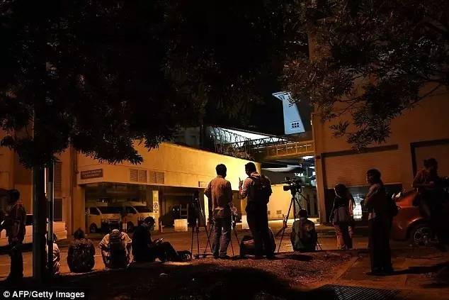 记者们在马来西亚为金正男做尸检的医院前蹲守。