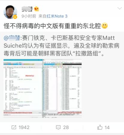 今天上午,一则来自西方媒体的报道引起了全世界的关注:美国的赛门铁克和俄罗斯的卡巴斯基这两家全球顶尖的杀毒软件公司,都表示引爆这轮全球电脑病毒危机的“Wannacry(想哭么)勒索病毒”的代码,有可能来自一个人们都想象不到的国家… 这便是很多人眼中全世界最封闭的那个国家:朝鲜… ![]() 可赛门铁克和卡巴斯基凭啥说是这次袭击和朝鲜有关联呢? 从路透社的报道来看,这两家杀毒软件公司给出的理由是:“Wannacry(想哭么)勒索病毒”的程序代码与3年前美国索尼公司曾经遭到的黑客袭击中出现的病毒程序代码很相似,而那次袭击索尼的正是一个被认为与朝鲜有关联的黑客组织:Lazarus Group。 至于当年这个黑客组织为啥会袭击索尼公司,则是因为该公司制作并发行了一部挖苦朝鲜领导人的电影,引起了朝鲜的强烈愤怒。 ![]() 除了袭击索尼公司,这个黑客组织还有很多“臭名昭著”的黑历史,比如不久前他们曾入侵孟加拉国的中央银行,并一举盗走了8100万美元的巨款… 不过,朝鲜官方已经多次否认他们与这个黑客组织有关联,宣称该组织可能只是同情朝鲜。但美国和俄罗斯的网络安全公司则通过技术发现Lazarus Group的IP地址在朝鲜。而对于大多数吃瓜群众来说,一个让人困惑的谜团是:对外界如此封闭的朝鲜,怎么培养得出这么一个令人恐惧的黑客团队….? ![]() 话说回来,尽管目前赛门铁克和卡巴斯基都发现今天引起全球恐慌的勒索病毒的代码与Lazarus Groups使用的代码相似,但两家公司也强调说“现在就说朝鲜是肇事者还太早”。 因为虽然这次病毒的代码与朝鲜黑客使用的病毒代码存在相似的地方,但这种病毒代码并不十分独特,而且不同国家的黑客之间也存在互相抄代码的现象。 同样持这一观点的还有美国知名的网络安全公司FireEye,以及多位接受路透社采访的美国和欧洲的国家安全官员。他们都表示仅凭目前的证据还远不能认定朝鲜是肇事者,尽管他们也表示不能排除朝鲜的嫌疑… ![]() 然而,比起这些网络安全专家的谨慎,众多西方媒体已经在他们的大标题中醒目地写出了“病毒袭击与朝鲜有关”,颇有一番“钦定”的感觉… ![]() ![]() 而在咱们中国,一些网络大V不仅同样已认定朝鲜就是肇事者,甚至还玩儿起了“地域黑”… ![]() 可耿直哥反复看了病毒程序的中文文档数次,并请教了多位东北和外地的朋友,也没发现这里有什么所谓的“东北腔”啊… ![]() 注:繁体中文和简体中文是同一个文案 ![]() |