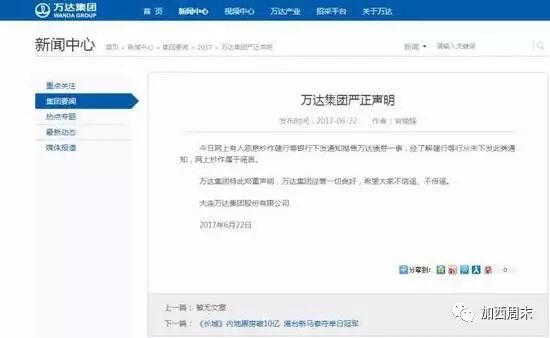 万达集团在6月22日惊现“股债双杀”,所持债券及股票均遭遇狂抛,价格大幅下跌。 仅计算股票方面,集团董事长王健林就遭遇超过66亿元人民币的市值损失。 王健林半天损失好多“小目标”! 这件事情的起因,是一个网上流传出的疑似银行内部通知的图片 显示:某银行内部通知,接到银监会紧急电话,要求提供对海航、安邦、万达、复兴、浙江罗森内里投资公司的境外投资借款情况及风险分析,重点关注所涉及并购贷款、内保外贷等跨境业务风险情况。 这个传闻简直火得不要不要的,不仅市场上表现“惊人”,社交媒体上也评论无数: 对此,公司澄清:万达集团22日于官方网站发布《万达集团严正声明》,声明表示“今日网上有人恶意炒作建行等银行下发通知抛售万达债券一事,经了解建行等行从未下发此类通知,网上炒作属于谣言。万达集团特此郑重声明,万达集团经营一切良好,希望大家不信谣、不传谣。” 同时,公司还表示,目前财务状况良好,日常运营一切正常,现金流充裕,无任何偿债风险。经公司董事会确认,截至目前,公司不存在应披露而未披露事项。经申请,公司股票自6月23日起复牌。 比较蹊跷的是上述“通知”的下发日是今年6月7日。也就是说,时间已经过去半个月后,这份通知才开始对中国的股票证券市场产生影响。 对此,“财新网”发文分析称,这次监管机构的排查对象,主要是近年来海外投资比较凶猛、在银行业敞口较大的民营企业集团。 报道称,这些海外投资项目累计金额越来越大,让北京当局开始担心激进的海外投资会否最终演变为金融风险,因此,逐层启动了风险排查的监管行动。 “搜狐财经”发布的一则题为“万达出事了?王健林承认海外投资是转移资产,还暴露了一个真相......”的文章引发了各界的关注。但截至目前该网站已将文章删除。 “因为非常时期,守住3万亿外汇储备是我们的命门。” 文章指出,在有关金融监管机构的官员频频发出警告的情况下,安邦等企业仍不收手,继续在海外大肆收购,因此有关部门就“不客气了”。 2016年5月12日,王健林在中国政法大学发表演讲 2015年11月,王健林在哈佛大学演讲时,曾经有人提问:如何看待万达快速增长的海外投资被视为向海外转移资产的问题。王健林作出了三点回应: 1.海外投资的结果就是“资产转移”,但资产转移或者在海外投资没有对错之分,只有合法和不合法之分。 2.国务院去年年底出台了“引导支持民营企业海外投资的有关规范意见”,所以中国企业向海外扩张是响应“国家号召”。 3.万达的钱是“我们自己辛辛苦苦赚出来的”,爱往哪儿投就往哪儿投,企业如果没有投资自由权,这个社会也就无所谓自由和公平。 针对王健林的上述言论,搜狐被删文章表示:正当人民币贬值时期,万达等企业还大肆去海外投资,“不就是做空人民币的举动吗?这不是对着干?” 虽然,这次万达债股下跌后可能再升,未必王健林落马,但也要有忧患意识,听信网友一言:立即把大部分的钱财,全部用于国家建设项目,只留一点点,回大连养老吧,这才能永绝后患。 来源:加西周末 |