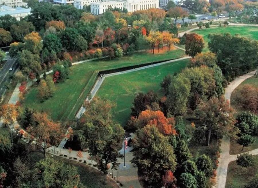 来源:假装在纽约 上周日,CBS的新闻节目“60分钟”播出了一期特朗普的专访,眼尖的观众发现特朗普白宫房间的墙上挂着一幅画。 全貌是这样的。 画中有美国历史上数位共和党总统,包括小布什、老布什、里根、林肯、艾森豪威尔、福特、尼克松和罗斯福。而特朗普坐在这些长者中间,和他们谈笑风生。 这幅画风诡异的画很快在推特上形成了病毒式传播,并且衍生出了很多的PS恶搞作品。 不知道你们看到这幅画时是什么感觉,反正我是打了一个冷战,因为我似乎隐隐嗅到了一种革命审美和个人崇拜的意味。 如果这幅画是为了恶搞,那无可厚非,但媒体采访到画的作者,密苏里州的一位民间艺术家,他说自己的创作动机是真诚的,绝非讽刺。 为了让特朗普的形象好看一点,他特意把他画得更年轻,更挺拔,笑容也更和善。 当艺术成为政治的载体,有一些边界被悄悄地打破了。这也许预示着下一步,政治会打破更多的边界,入侵更多的人心? 其实现在的美国社会已经有一些泛政治化的趋势,立场差异和党派之争超越普世价值,越来越多的美国人执着于国家的伟大光荣这样宏大的命题(make America great again),而忽视了那些真正珍贵的东西。 所以,今天想讲一个和这个话题有点关系的故事。 1、 故事的主角叫林璎(Maya Lin),美国著名的华裔建筑师。 中国人可能没怎么听说过林璎这个名字,偶尔有知道她的也必然会提到她是林徽因的侄女,仿佛那才是她人生最重要的标签。 但是在美国,林璎的名气非常大,她是少数真正做出杰出成就和有全国性知名度的华裔名人,被评为20世纪最重要的100个美国人之一。 她还曾经和比尔·盖茨、汤姆·汉克斯等人一起被奥巴马授予总统自由勋章,有一部关于她的纪录片还获了奥斯卡最佳纪录片奖。 所以对美国人来说,情况正好反过来,他们并不知道林徽因是谁,要说是林璎的姑妈才行。 林璎的父亲、也就是林徽因的弟弟林桓,1948年到美国西雅图的华盛顿大学留学,后来就定居美国,当了俄亥俄大学艺术学院的院长。 林璎在俄亥俄州的雅典城出生,是土生土长的美国华裔。后来她考上了耶鲁大学的建筑系,不过那时她并不知道自己有一个同样当建筑师、在中国大名鼎鼎的姑姑。 2、 林璎上大学的时候,正好是越战刚刚结束。 越战是美国历史上一个非常特殊的事件,它所引起的阵痛直到今天还埋藏在美国社会的深处。 战争初期美国人的卫国热情高涨。肯尼迪总统一句“不要问国家能为你做什么,要问问你能为国家做些什么(Ask not what your country can do for you, ask what you can do for your country)”,让无数年轻人热血沸腾,恨不得上战场抛头颅洒热血。 战争打响,所有国民都被绑上战车,不管是不是身在战场,都得绷紧神经。 后来随着战争越拖越久,美国全社会的反战情绪逐渐发酵,人们开始质疑反思这场战争的正当性,随之而来的是深深的受挫和虚无感。 1980年,战争留下的伤痕还清晰可见,那时的美国社会还是非常撕裂的。 一群越战老兵积极在国会游说,想要在华盛顿的宪法公园修建一座献给战友和纪念自己青春的纪念碑。 他们向全国征集纪念碑的设计方案。林璎当时还在读大三,她知道这个消息后就把自己的课堂作业寄了出去,寄出去之后就忘记了这件事。 组委会收到的1441件参赛作品里有近40英尺高的摇椅,有两层楼高的军靴,有巨大的钢盔,有占地面积两英亩的巨型美国国旗——从某种意义上,它们都是对某种宏大秩序的归顺和致敬。 参赛者里不乏重量级的建筑事务所和著名建筑师。为了以示公平,所有设计方案不署名。 两名建筑师、两名园林设计师、两名雕塑家和一名人类学家组成的评审,经过几轮盲选最终选出了他们最喜欢的这个作品。 这是一道492英尺长的墙,倒V形嵌在地面上,像是用刀把地面切开,两翼分别指向林肯纪念堂和华盛顿纪念碑;墙面是黑色反光的花岗岩,上面镌刻越战中57000多名美军阵亡者的名字。 评审团根据作品留下的地址找到耶鲁校园,发现那是一间学生宿舍,设计者 Maya Lin 原来是个还在读大三的小姑娘。 林璎解释说,这面墙如同是大地的伤口,但它平坦光滑而明亮的表面又象征伤口的愈合。大片的草坪之中,碑石升出地面,暴力和痛苦就这样被治愈了。 “它将成为一道边界,隔离着我们的世界和另一个更祥和更隐秘的遥远世界。我希望我的设计能和大地融为一体,而不是去占据或者独霸一方,耀武扬威地炫耀情绪。” “战争纪念碑的设计,并非只是单纯地修改普通纪念碑的外在形式,更重要的是能让人们得到感悟……无论生命还是死亡都只是个体的体验,而纪念碑内的宁静空间,能让人更好地在这里沉思回想。” 3、 评委们敏锐地意识到,这将是一件能载入建筑艺术史册的世界级作品。 但他们没有想到的是,评选结果公布后招来了排山倒海的争议和批评,越战老兵认为这个完全不像纪念碑的纪念碑是对他们的贬低和侮辱。 一个越战老兵激烈动情地回忆起自己从战场回来穿着制服在芝加哥机场被人吐口水的痛苦经历。 他说,林璎的设计是让人蒙羞的破墙,是一道黑色的伤疤,而黑色在全世界所有的文化里都代表着悲伤和耻辱,“我不管这是什么艺术作品,没有哪个必须在轮椅上度过余生的越战老兵会愿意去参观这样一座纪念碑”。 风暴席卷全美,报纸和电视天天报道。 上至国会,下至街头咖啡馆,人们围绕着这座纪念碑展开了