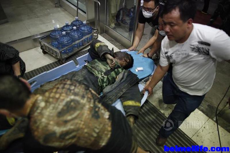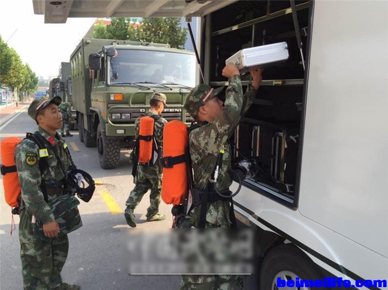 ! i3 Y" Q' i& T3 Q" z1 f增援的消防官兵和北京军区防化团部队加入救援工作……