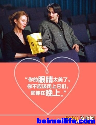 ! ?8 m" m8 }# P7 Z' L7 }+ \ 电影《香草天空》中,Tom Cruise对刚认识的Penelope Cruz这么说。你看,即使不知道该聊什么也知道怎么说了吧。$ I* R& l" W/ |$ `4 f' e! L2 i9 D