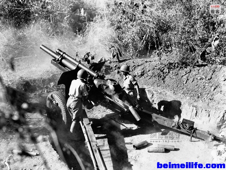 早在1943年10月,在印度的中国驻印军就从缅北向日军发动了大反攻,行动代号是人猿泰山。1944年12月11日,在缅甸八莫,中国驻印军第3榴弹炮营第9连正在向日军阵地开火。摄影师:莱普尼茨。美军通信兵(U.S.Army Signal Corps)拍摄。