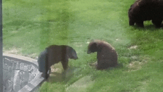 两只小熊在游泳池里玩得正嗨,一只母熊则在露台上走来走去。“我以前也在后院里见过熊,但从没见过直接跳进游泳池的,也没见过这种拖家带口的……” 1 b0 `/ W% e: X% c