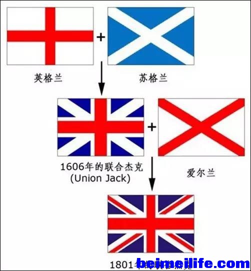 8 v) X& U; g$ s0 Z) b. ~) y; v北爱尔兰那个旗帜叫作圣帕特里克旗,是北爱尔兰或者叫爱尔兰的最重要的标志,它的标志也是一个斜叉旗,这个斜叉旗再落到原来那个米字旗上,就是现在大家看到的the Union Jack,联合旗舰旗,这个旗就是UK(United Kingdom),英国旗。