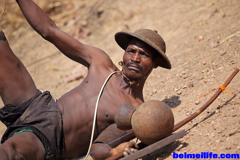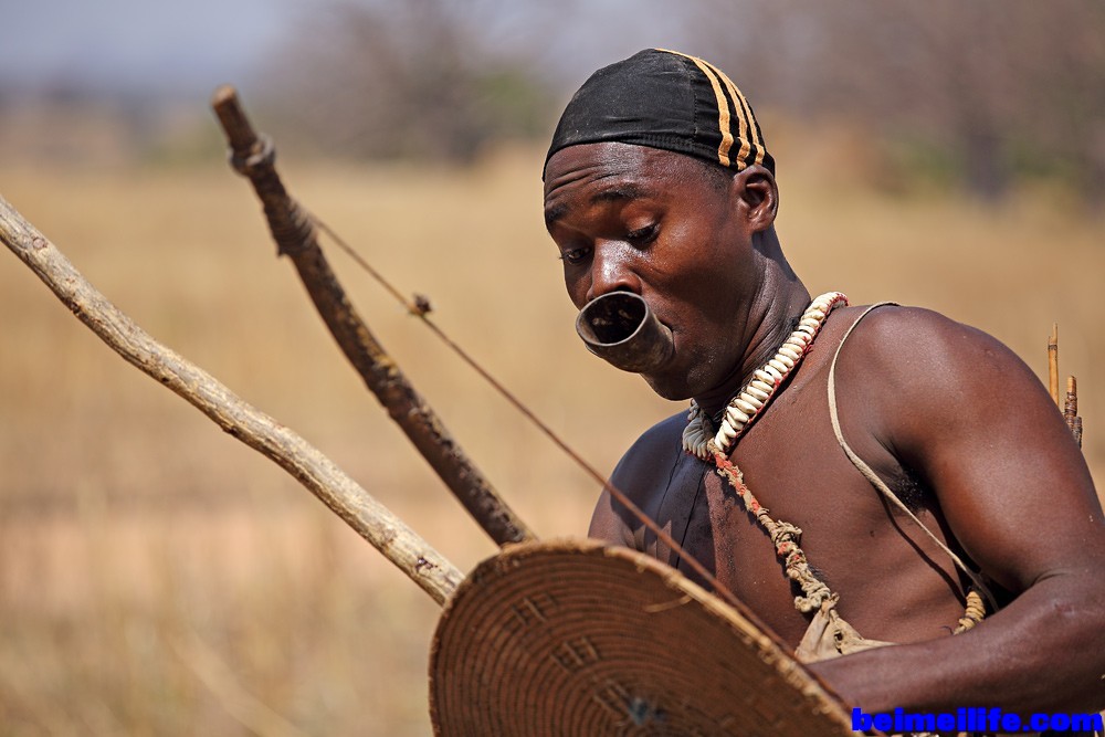 % x0 T4 {$ Y! VBatammariba man playing traditional musical instrument.