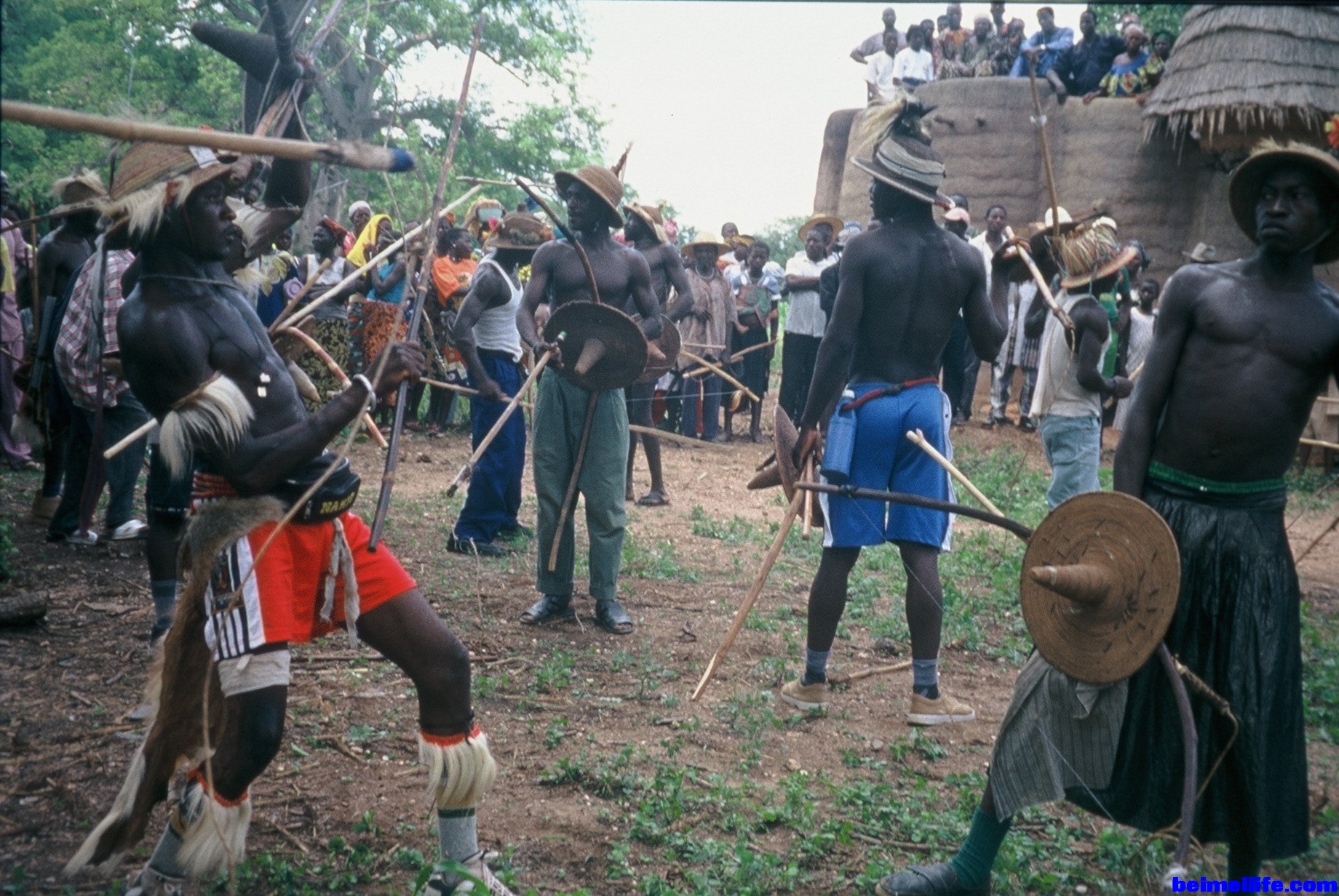 3 c/ e) L! {* [% ]Somba Warriors fighting with tribal weapons,Benin. 9 o. x6 a. z' T