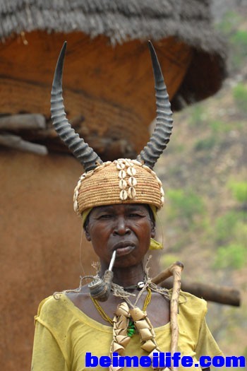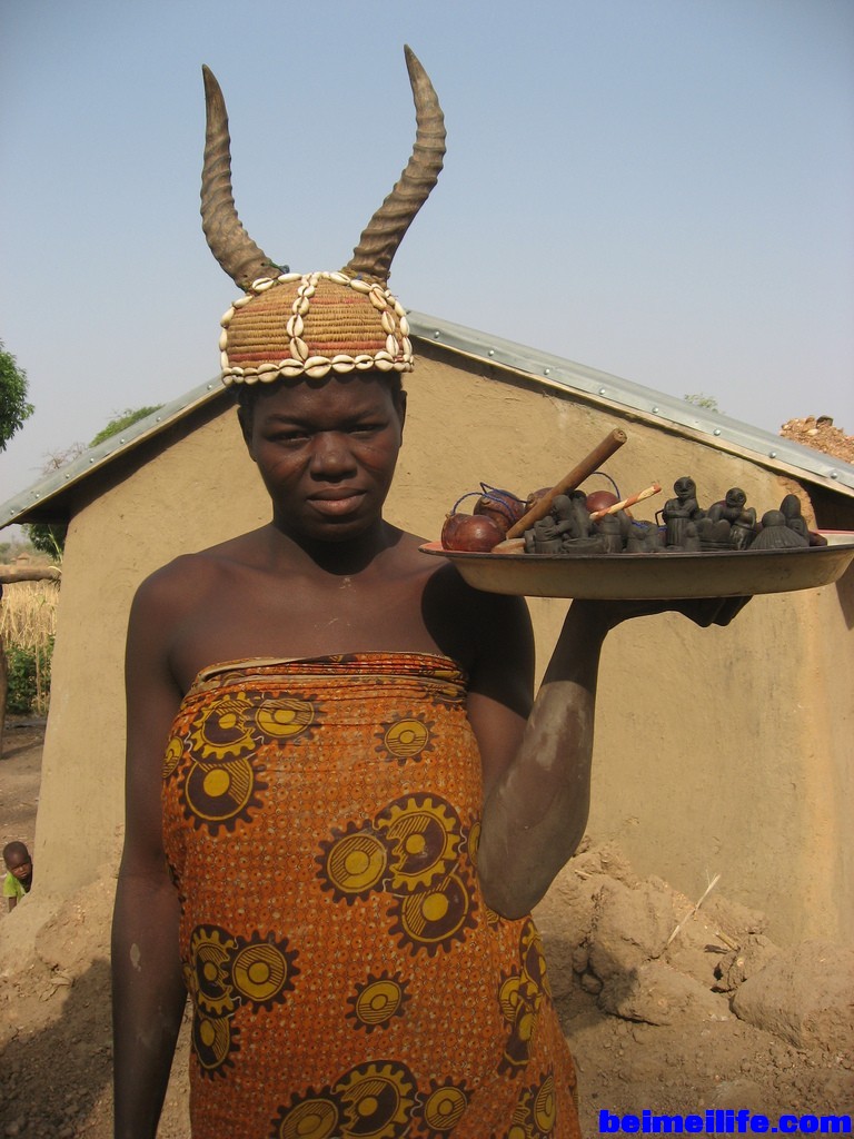Tamberma (Batamariba) woman wearing antelope hedddress,Togo