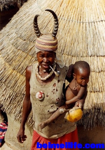 3 N( V1 ^7 t8 s$ CSomba意思是“赤身露体” the Somba still live in their traditional ways and in certain Tayaba-Somba tribes, the fetish priests still dress in a simple loincloth and the women wear only sarongs.在Somba仍然生活在他们的传统方式和特定Tayaba-Somba部落,迷信道士依然身穿简单缠,女人只穿围裙。 C5 e/ b& K4 K0 ^: u$ L