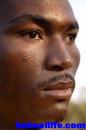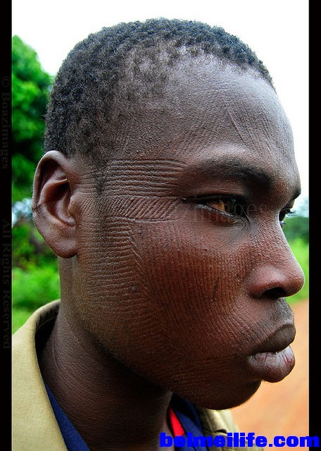 & @, l: V" I. `0 nSomba Man with tribal marks on his face and body. Marks is used as a form of initiation into adulthood, beauty and a sign of a village, tribe, and clan. Natitingou, Benin | © Jean-Michel Clajot