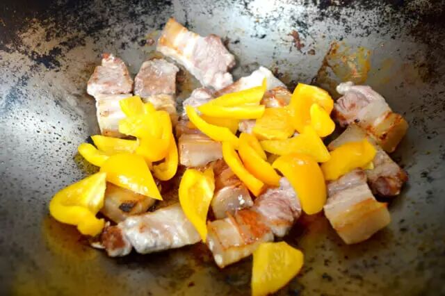 . W' S) ^$ D" g& K3 s4 v3.加入甜椒炒3分钟。