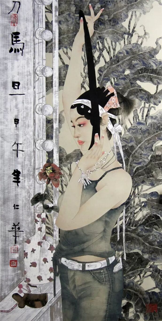 于是她创作了大量京剧题材的画作, 而先前接触到古今中外的美学、哲学 也在潜意识中给了她深深的影响。