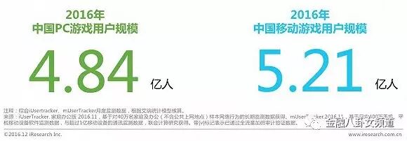 得益于中国的人口红利 2016年中国PC游戏人口和移动端游戏人口 分别是4.84亿和5.21亿 两者人口都趋于稳定 对游戏开发者而言更加要求产品细分和创新 有才华的创业者们 这是个机会