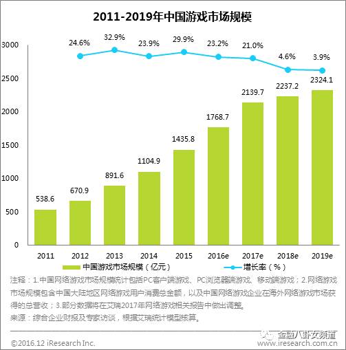 咳咳,看了这么多图片和八卦 说点严肃的 2016年中国游戏市场规模达1768亿