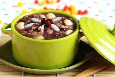 + m% X m7 f/ `% w 辅料: 可适量加花生、薏米、小米、红枣。 做法: 1.等量黄豆、绿豆、黑豆、红豆、花生、薏米,入水浸泡过夜。 2.冲洗干净,加黑米,小米,红枣,足够量的清水,大火熬开,转小火熬煮2-3个小时。 3.把粥放到一边晾凉,加入糖拌匀,喜欢冰的可以放入冰箱冷藏。