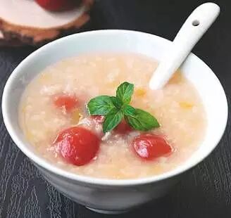 - z' ~! T, l" M b E 做法: 1. 糯米用冷水浸泡2 小时后沥干水分,山楂洗净去根蒂备用; 2. 砂锅中加适量水,大火煮开后放入糯米,再次煮开转小火,煮至米粒开花汤汁浓稠,加山楂继续煮15 分钟,最后加入冰糖即可。 特点: 酸甜开胃,帮助身体减去多余脂肪。