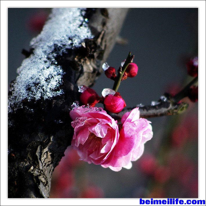 8 f! |) s, _# N/ K7 V. t幽谷那堪更北枝, 年年自分着花迟。 高标逸韵君知否, 正是层冰积雪时。 ——陆游