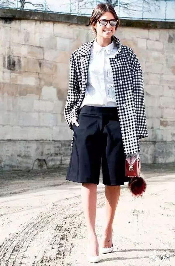 ▲有人会认为这种短裤是大长腿的专属,个不高的人穿了之后身材会变成五五分。其实只要用一双高跟鞋搭配高腰的百慕大短裤,拉长比例就这么简单。
