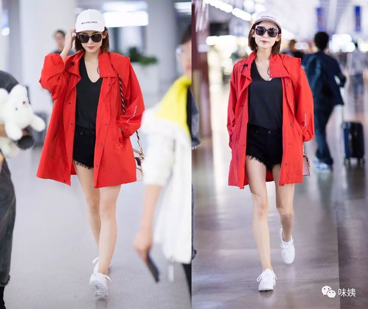 . s5 U T; Z8 u, N. [▲古力娜扎5月2日现身上海机场,Rag & Bone的黑色T恤和牛仔短裤,外搭红色廓型外套,红黑白的撞色经典又耐看!