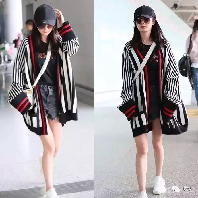 ▲大幂幂5月4日长沙赴南京,身穿Alexander Wang的牛仔短裤,外搭一件条纹针织开衫,超短的毛边牛仔短裤,美腿尽显。 3 N8 \2 m- j! c3 ?- }" [& Q$ y