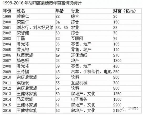 胡润富豪榜上17年间,几乎没有谁能够坐稳榜首的位置,甚至连续坐庄前三名都凤毛麟角: