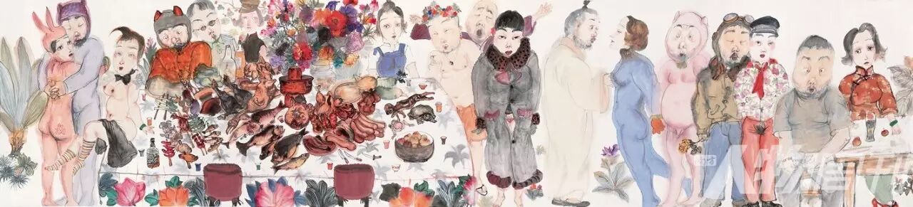 2012年李津盛宴之一 52cm × 230cm 纸本彩墨 ' L5 v# S- N: i' I% z+ ^/ W! E
