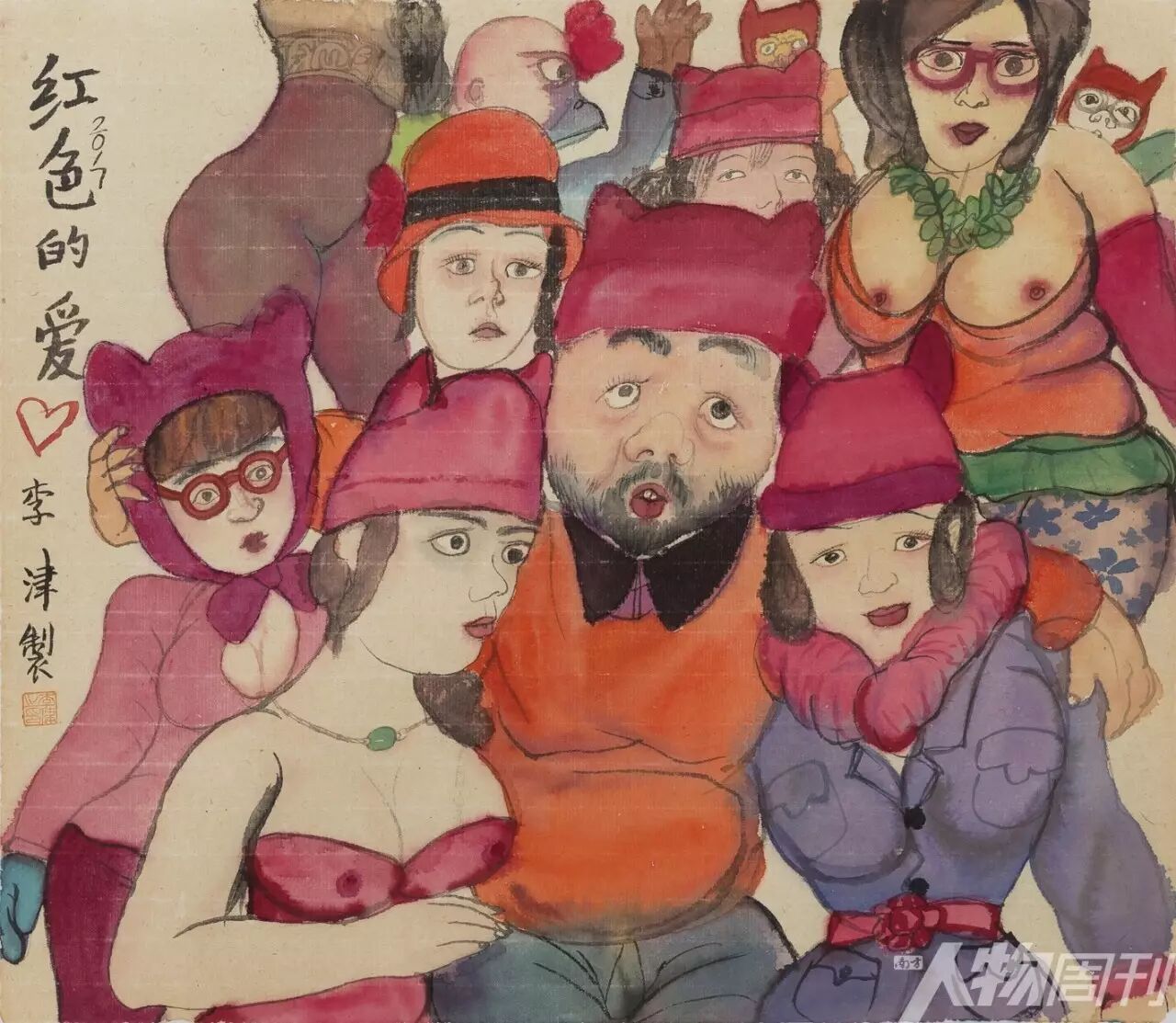 5 N7 U+ _1 z G8 |6 M为李津策划了他的三十年回顾展的汪民安,从哲学角度解读出了他满纸声色背后的荒凉和荒诞,“他致力于将人性的东西灌注到纸上,并将这种瞬间的快乐永恒化。李津的作品是表层的喜剧,深层却埋伏着挥之不去的伤感。他对世俗生活的强烈迷恋受到了必死的悲剧意识的促发,这正是‘人的终结’的主题,它在此以两种方式表达出来:一种是海德格尔式的人之必死意识,一种是科耶夫式的人之终结意识。对于前者而言,我们看到了画面笑声后面的悲剧,对于后者而言,我们看到了画面悲剧前面的笑声。”; u4 w4 l; w& A: W