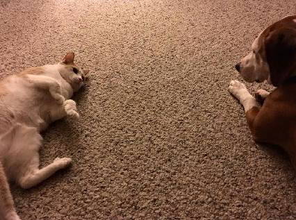 它似乎一下子就爱上了这只猫。