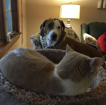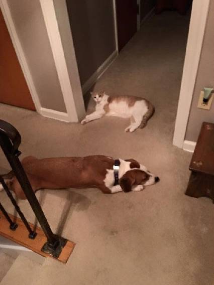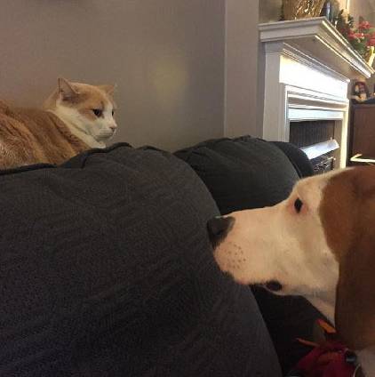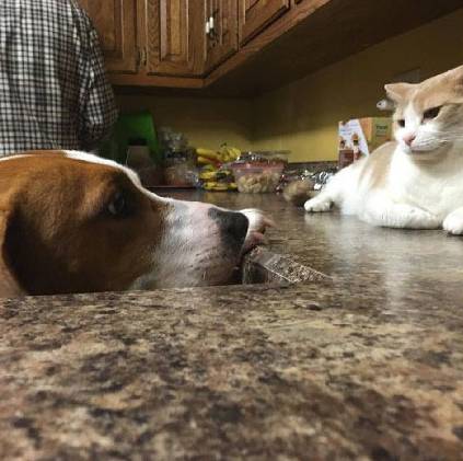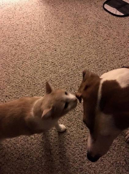 " C# I0 L2 |% R1 ?3 b1 V; jPooh是麻麻家里的一只小男喵。 铲屎哥从来没有过一见钟情,但是Pippy,一只狗遇到了! # U. m! m- g9 e& B# `