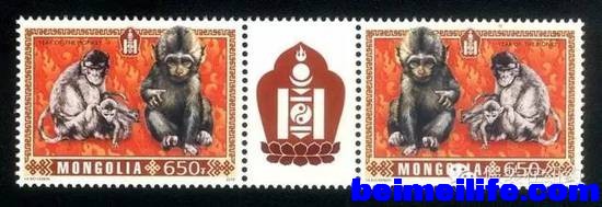 但最让人感动的还是南太平洋的六个岛国——库克群岛、萨摩亚、纽阿福欧、艾图塔基、彭林和汤加,他们联合推出了一套很有特色的邮票作品。 前五个国家分别发行了自己的猴票系列,分别叫趣猴承欢、俏猴赏花、灵猴献瑞、金猴盘福、喜猴舞春。