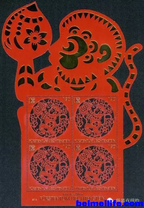 列支敦士登的剪纸风格中国味儿更加浓一点,但是如果你仔细看,会发现邮票上印的是汉字“猿”。中国人过的是猴年,不是猿年好吗……