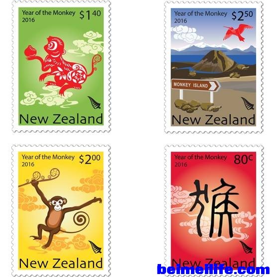新西兰的也很有美感,其中一枚还顺带宣传了他们的猴岛。