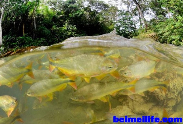 葱郁的热带雨林与汹涌鱼群,组成了巴西亚马孙的完美生态$ K7 P, C4 `6 u9 S( x