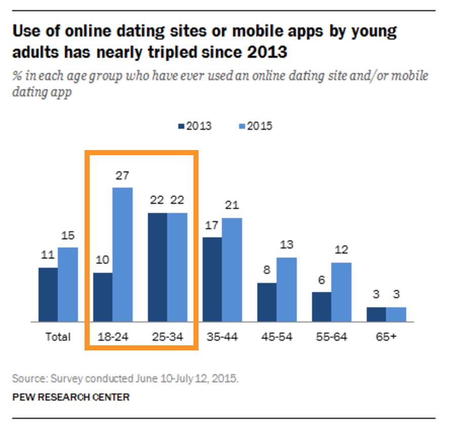 根据数据分析网站Statista调查和Pew Research网站,美国92%的受访者有在使用约会软件;使用约会网站和手机软件最多年龄段在18岁到34岁之间,正是北美留学生的集中年龄段。