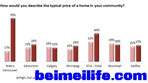 * C7 G: u9 ^- T$ ?8 p安格斯.雷德研究所以往对加拿大房地产市场的民意调查是重点关注温哥华和多伦多这两个房价过高、房价升势过猛的地区,这一次是在加拿大全国范围之内就民众对房地产市场的价格是否过高进行把脉调查。